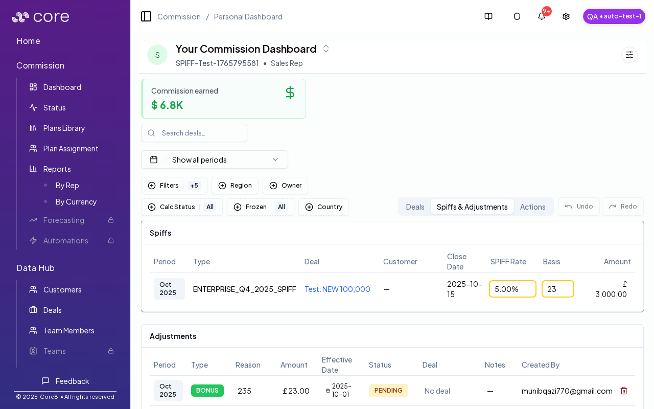 - Go to Commission → Dashboard (manager view).
